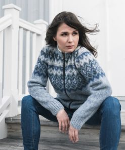 Blaue Strickjacke